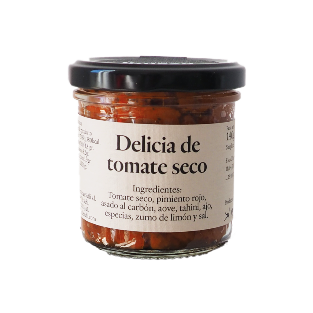 La delicia de tomate seco es la fusión de colores, texturas y sabores que deleitará todos tus sentidos. Con una consistencia suave y cremosa, esta exquisita crema tipo mousse encierra en cada cucharada el intenso sabor del tomate seco, el aroma ahumado del pimiento rojo asado al carbón y la frescura del aceite de oliva virgen extra.