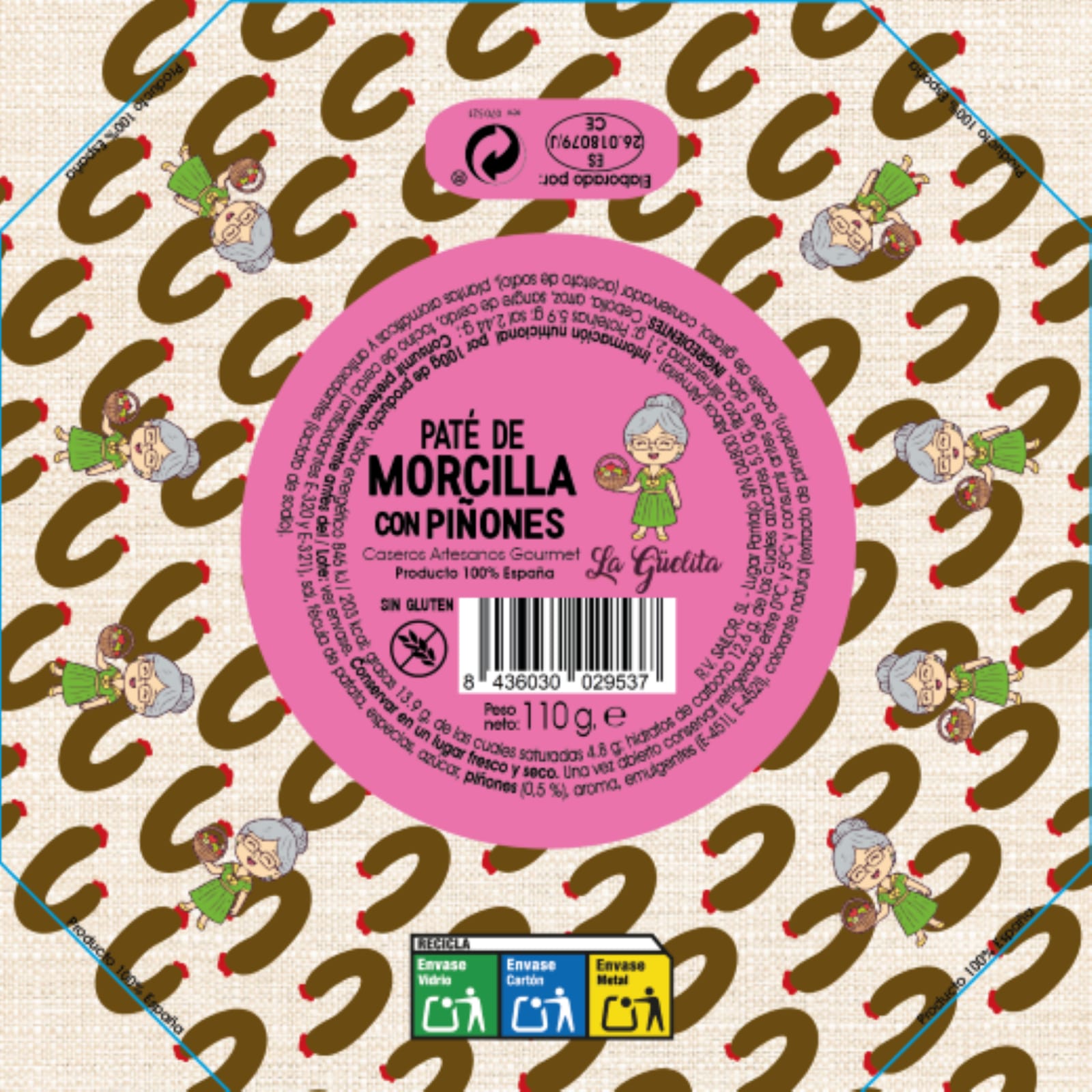 El Paté de Morcilla con Piñones 110 g PREMIUM Artesanal de La Guelita es una explosión de sabor tradicional y carácter gourmet. La intensidad de la morcilla artesana se combina con la textura crujiente y el aroma delicado de los piñones, creando un producto único y equilibrado.