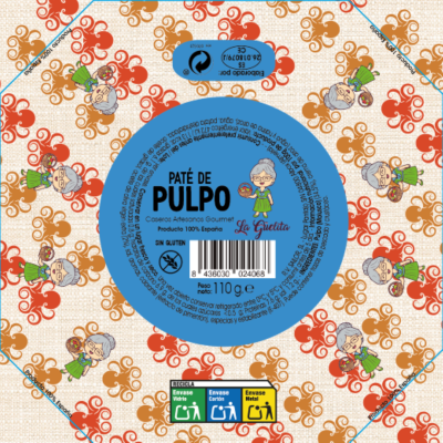 El Paté de Pulpo 110 g PREMIUM Artesanal de La Guelita es una delicia marinera que rinde homenaje a la gastronomía gallega. Con un sabor profundo y auténtico, este paté captura la esencia del pulpo cocinado a fuego lento, acompañado por especias naturales y una textura suave y cremosa.